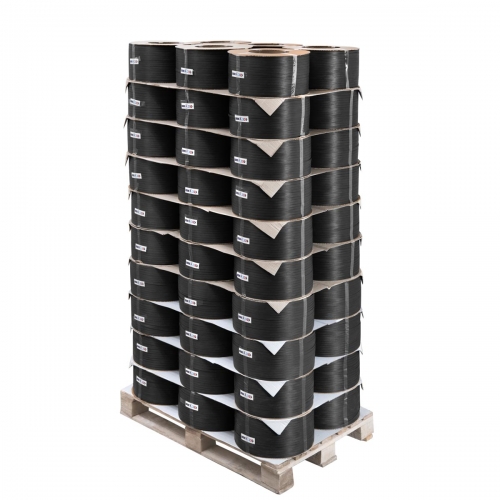 پالت: شامل 60 رول تسمه بسته بندی است. تسمه ها روی یک پالت چوبی به اندازه 80*120 سانتی متر در 10 ردیف 6 تایی قرار می گیرند بین تسمه ها از 9 کفی (ورق های جداکننده ردیف ها) استفاده می شود و دور پالت فیلم استرچ کشیده می شود.